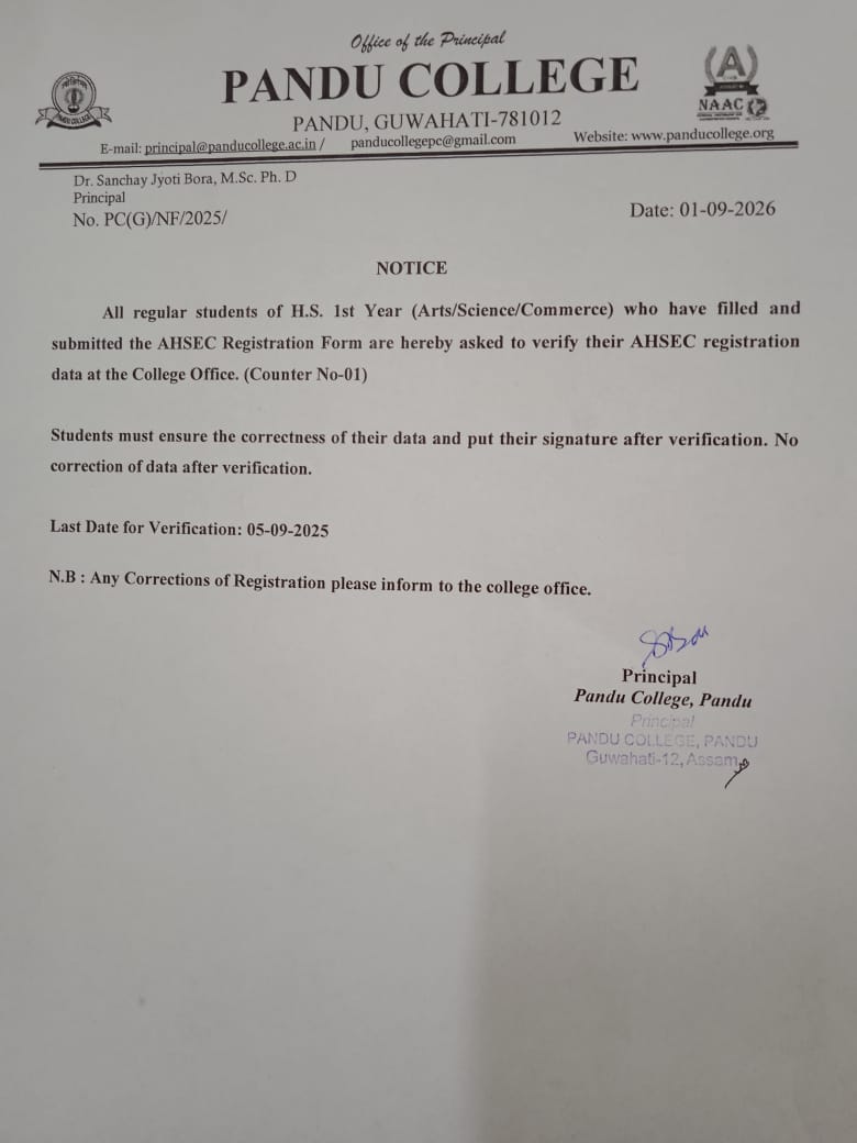 2025-08-01-SUBMISSION OF HS FIRST YEAR (AHSEC) REGISTRATION FORM FOR THE SESSION 2025-2026 WITHIN 14-08-2025-Click Here