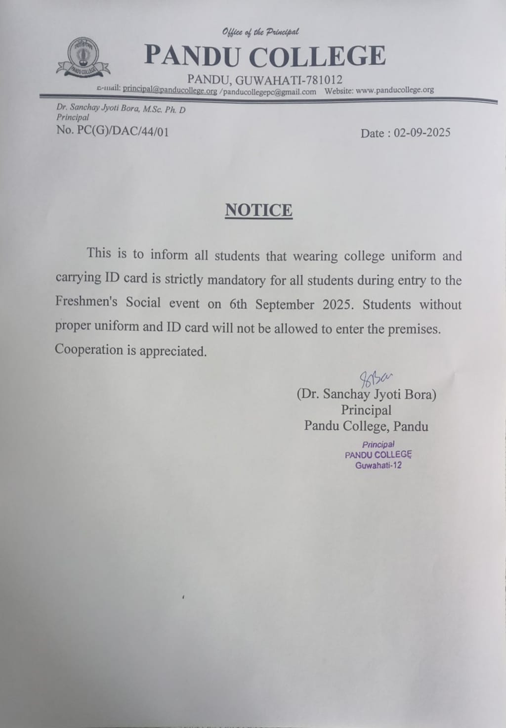2025-12-15-All the Students of Pandu College are directed to fill the link below as directed by the Government of India. This Anti-Ragging undertaking is Mandatory to complete - https://antiragging.in/affidavit_registration_disclaimer.html