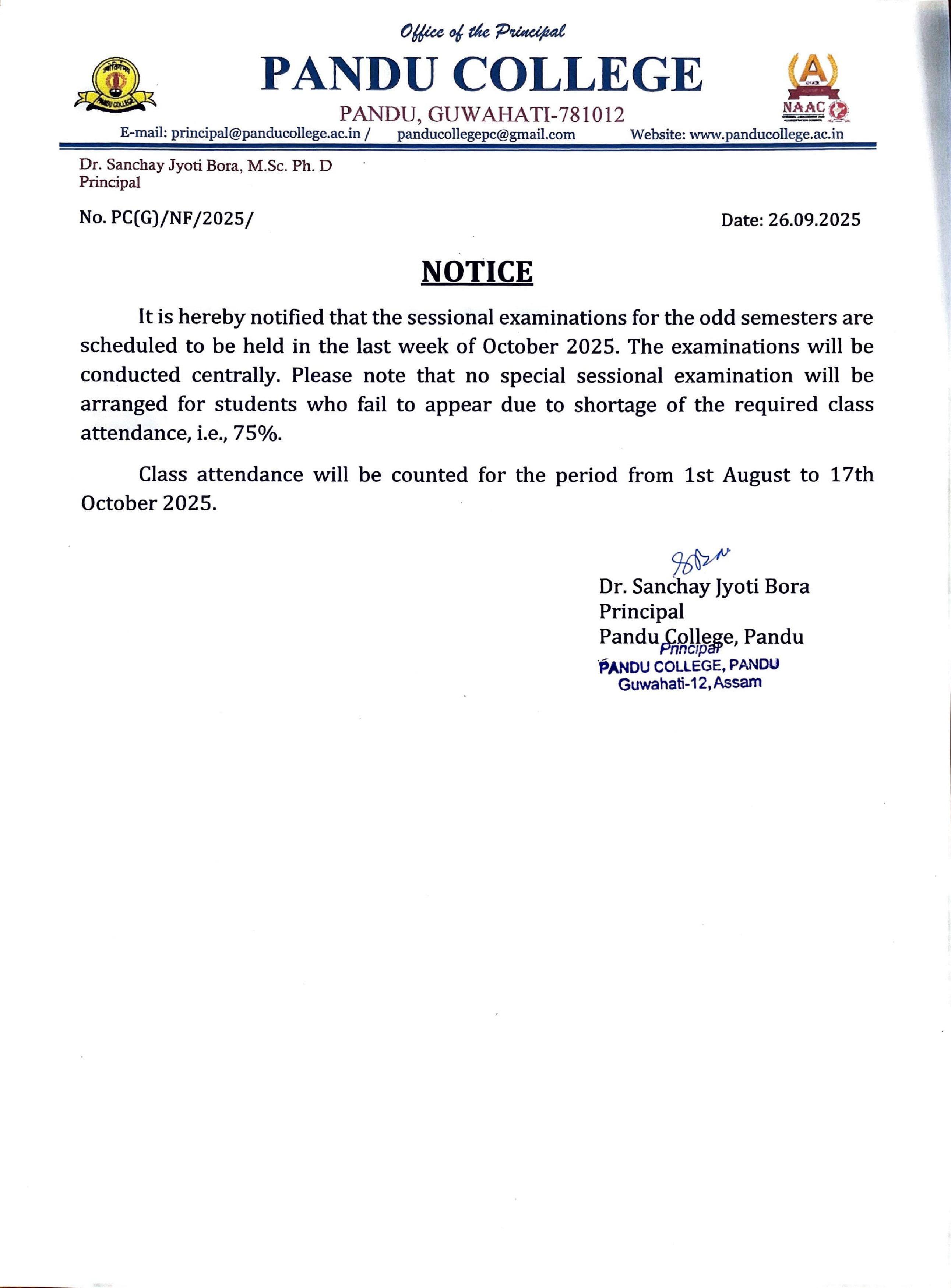 2025-09-26-Sessional Examinations Odd Semester 2025-26-Click Here