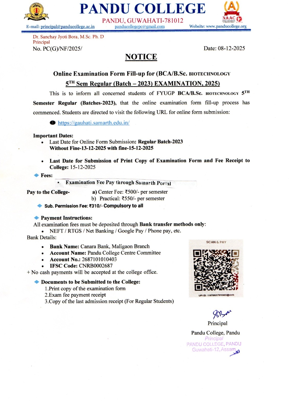 2025-12-09-BCA /Biotechnology 5th Sem (Regular Batch-2023) Exam Form Fill-up Notice-Click Here
